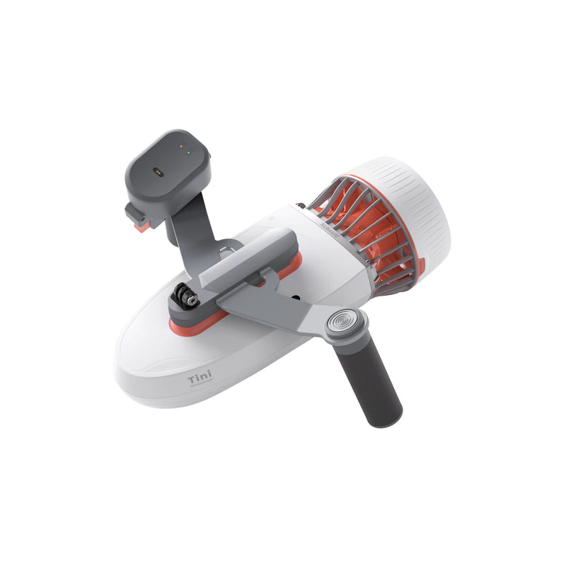 Tini adopts Sublue self-developed high-efficiency motion system and wireless control technology, innovative modular design, realizes the flexible assembly of components, is convenient to carry, and meets the diversified needs of single-boosting.Double-boosting, multiple-boosting, and motion assistance. Optional floater, mobile phone waterproof case holder, double-boosting combination handle, inflatable floating board andother official accessories. There is a standard sports camera hanging point under the front of the product, and a mobile phone waterproof case holder is added through the floater accessory shell to easily record underwater moments.